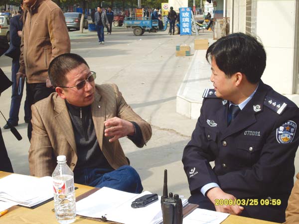 | 掇刀區(qū)委常委、政法委書記、公安分局局長王文忠與荊門藍(lán)鷹城市技防聯(lián)網(wǎng)報(bào)警服務(wù)中心魯?shù)卤罂偨?jīng)理交流、探討技防聯(lián)網(wǎng)報(bào)警民營化發(fā)展趨勢(shì) |
